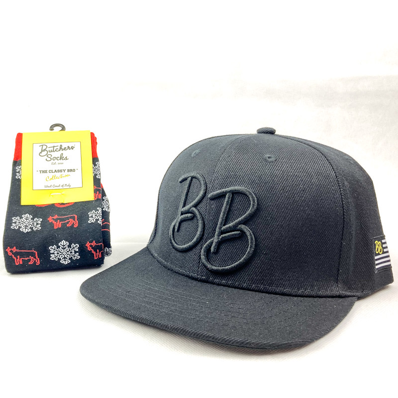 In the Butchers’ Set Vol. 5 you will find the Triple Black snapback and the socks from the Classy Bro Collection “Black Snow Flake”, two accessories that are already a classic of the ButcherBros culture and that together complete the outfit of a real meatlover.