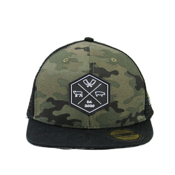 The Camo Bros. you recognize it immediately from the camouflage look … with the back in breathable mesh, the front in camouflage fabric and the embossed pvc logo … the unmistakable Hexagon Butcher!