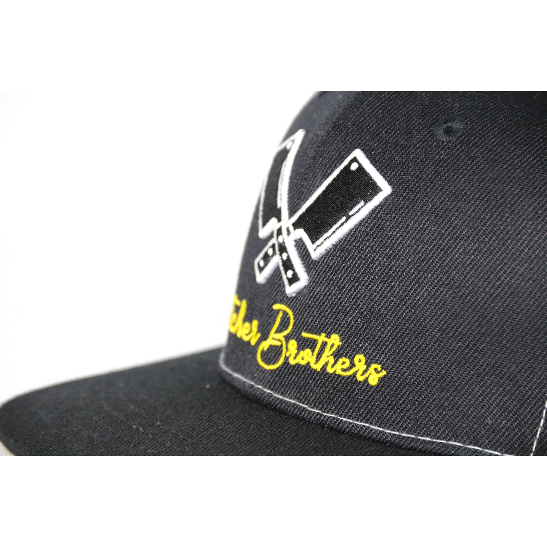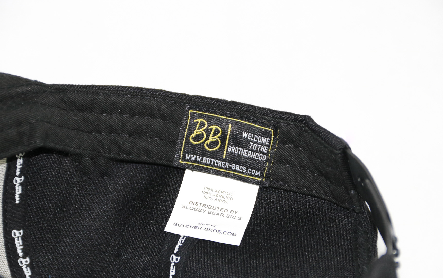 The 3D embossed logo stitching and side patch demonstrate the care with which the Butcher Bros. have crafted this hat. The flat brim and comfortable padding make it simply the top for all butchers. Adjustable snapback, one size fits all.