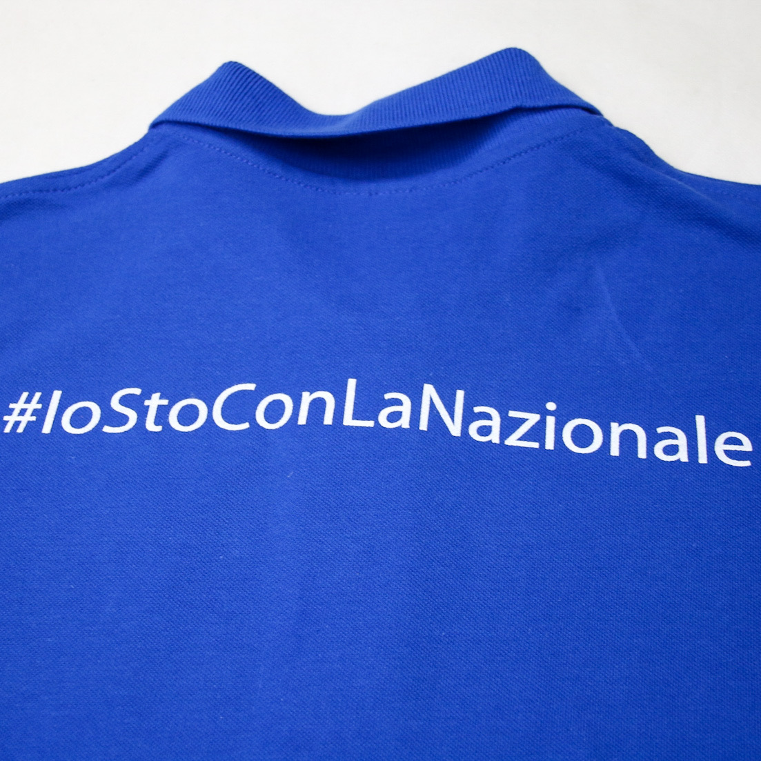 The short-sleeved polo shirt is made of 100% cotton, with the national team shield embroidered on the chest and the print on the shoulders: #IO STO CON LA NAZIONALE. Perfect to be worn on all occasions and to display it in your own butcher’s shop.