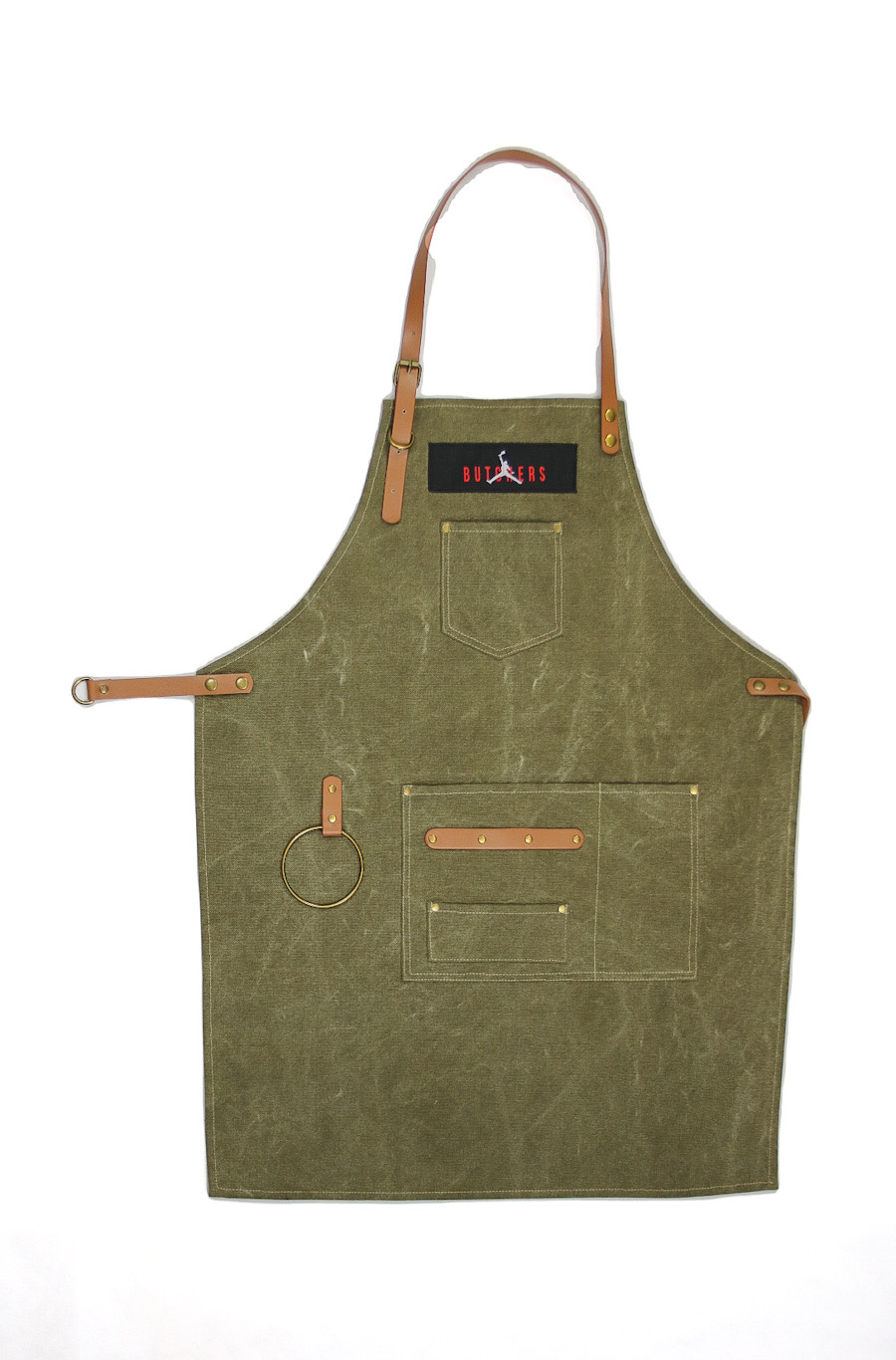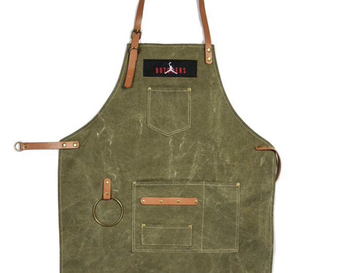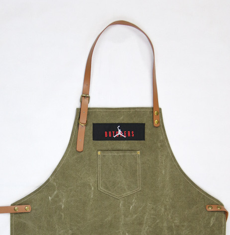 Il modello AIR Butcher in resistente tessuto canvas color verde oliva , si riconosce per gli accessori in pelle color cuoio e la patch con il logo Butchers sul petto. Le tasche ampie e comode posizionate centralmente ed il taschino sul petto, sono perfette per tenere sempre a portata di mano tutto quello che vi pare. Questo modello è dotato di anello porta salvietta, una comodità da non sottovalutare se avete in mente di passare qualche ora davanti alla griglia!