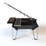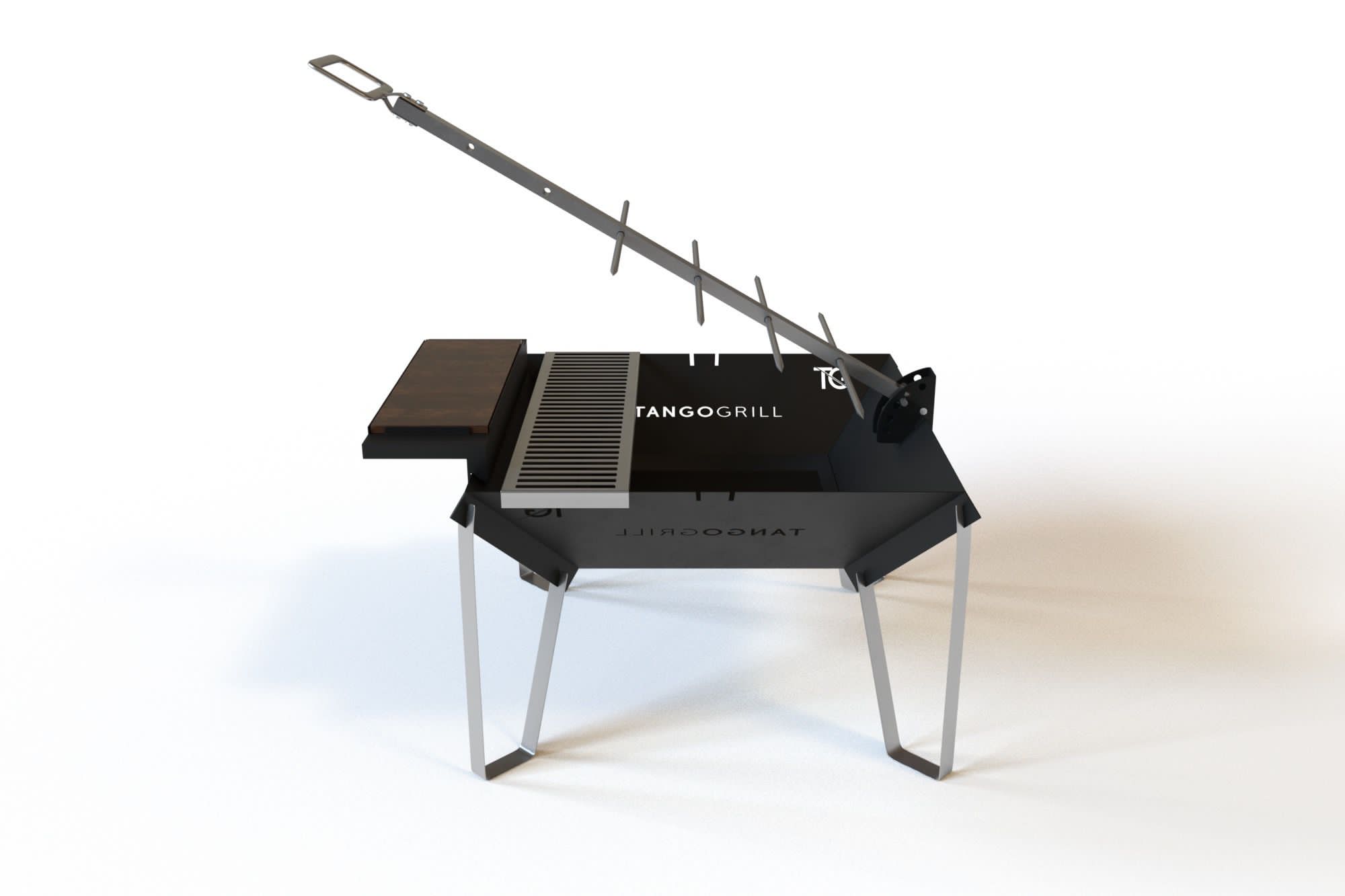 Il braciere su cui posizionare la legna o il carbone misura 60cm X 60cm è realizzato in acciaio al carbonio di colore nero, l’asta da asado è lunga 60cm e vi si possono posizionare 4 spiedi.