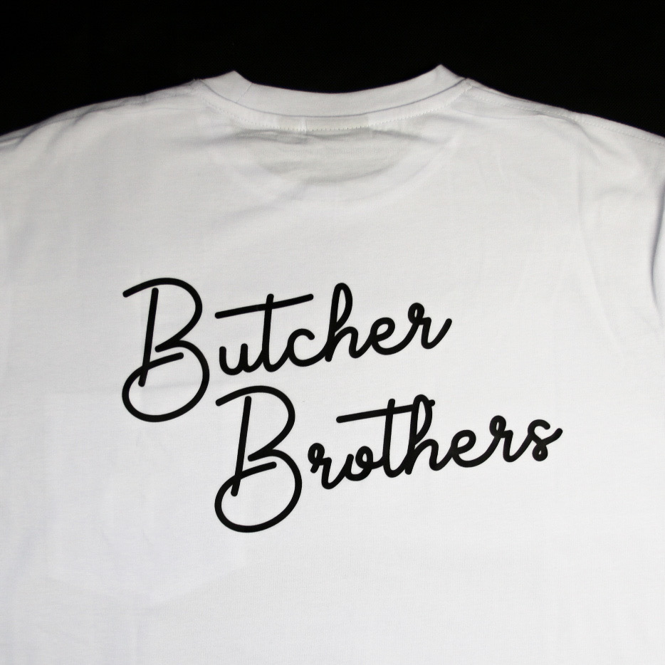 Le t-shirt ButcherBrothers sono uno status symbol per tutti gli amanti della carne e delle mangiate epiche, e sono state ideate dalle menti del ButcherBrothers BBQ Club durante i nostri epic barbecue.